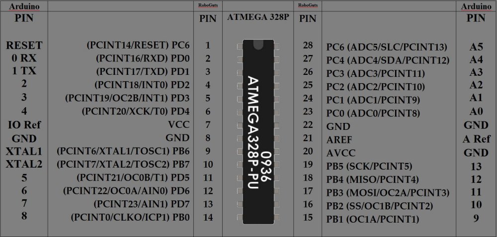 UNO PIN #'s differ from actual chip v. RoboGuts™ uses same PIN #'s as chip!